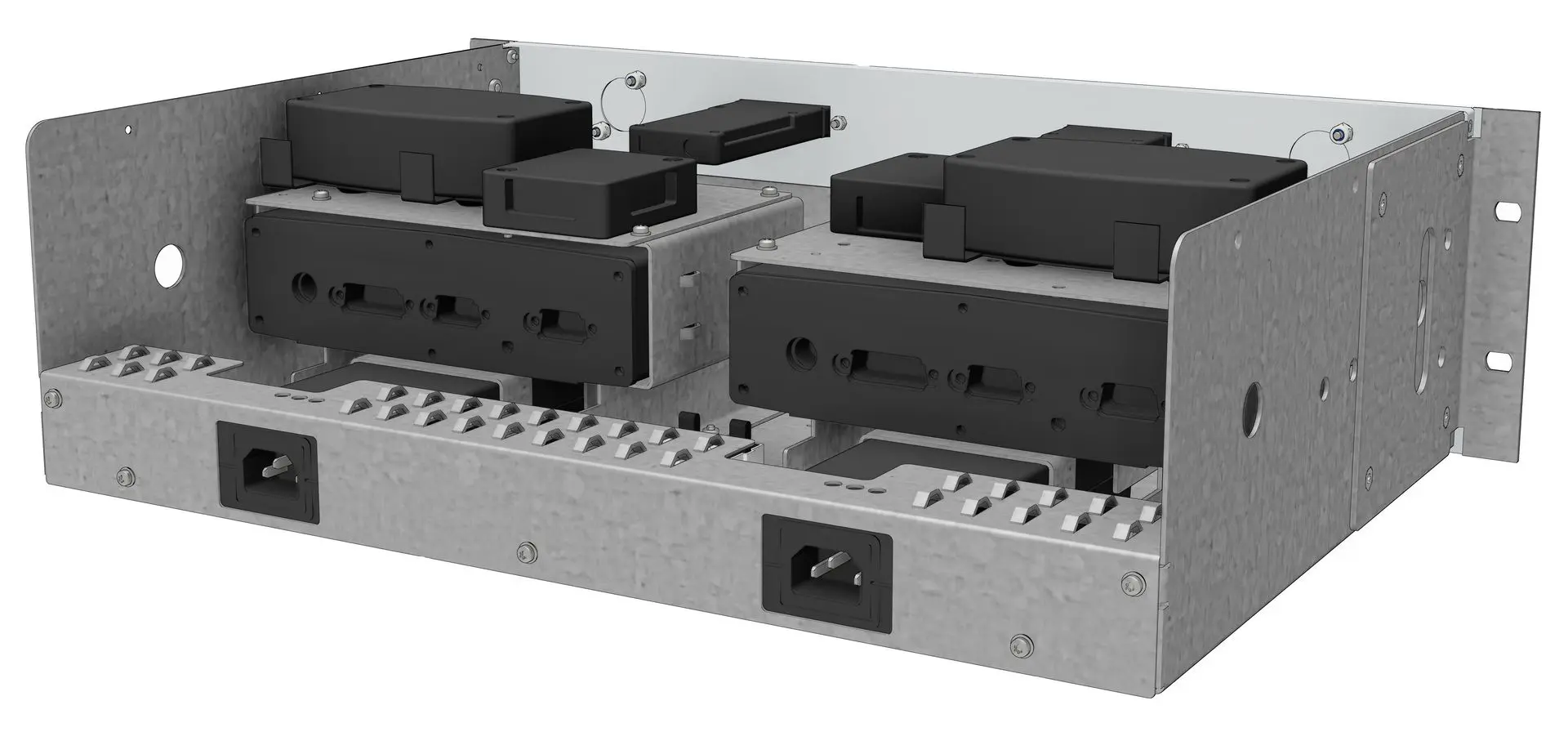 Die Funkgeräteträger sind mit zwei Höheneinheiten (2 HE) oder drei Höheneinheiten (3 HE) erhältlich.
