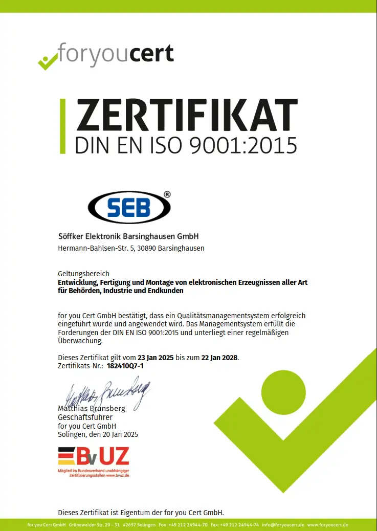 Qualität ist für uns kein Zufall, sondern das Ergebnis klar definierter Prozesse, kontinuierlicher Verbesserung und eines konsequent gelebten Qualitätsmanagements. Deshalb ist unser Unternehmen nach ISO 9001 zertifiziert – dem international anerkannten Standard für Qualitätsmanagementsysteme.